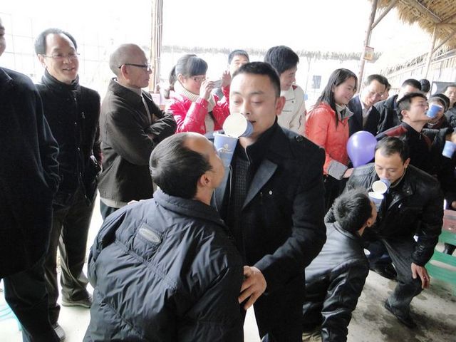 生日会上,基层工会还精心准备了双人跳接力赛、同心协力、叼杯子运水等趣味活动。在叼杯子运水的活动中,有的员工衣服上已经被冰冷的水湿透了,但是员工的热情却依旧高涨,就连公司执行总经理、工会主席也踊跃参与到我们的活动中来,与大家共同庆祝生日,并为活动中获奖的团队颁发了奖品。