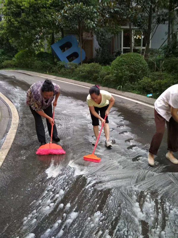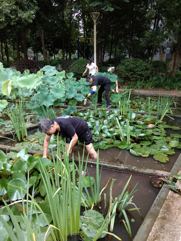 物业人员发扬不怕脏不怕苦的精神,清理绿化带内的杂物、清理荷花池塘枯叶青苔、冲洗路面、清理堆积杂物的卫生死角,并耐心的与有抵触情绪的业主沟通。用实际行动让文明创建这一概念深入业主心里,一些业主也自发加入到清理杂物的队伍中。