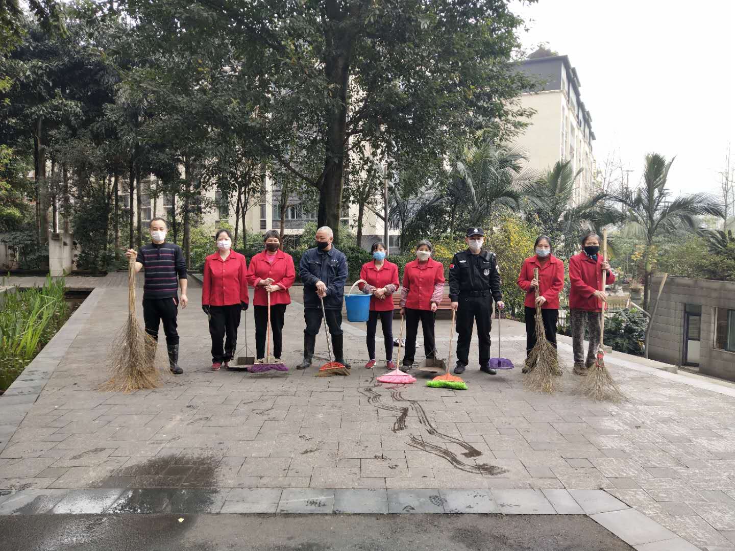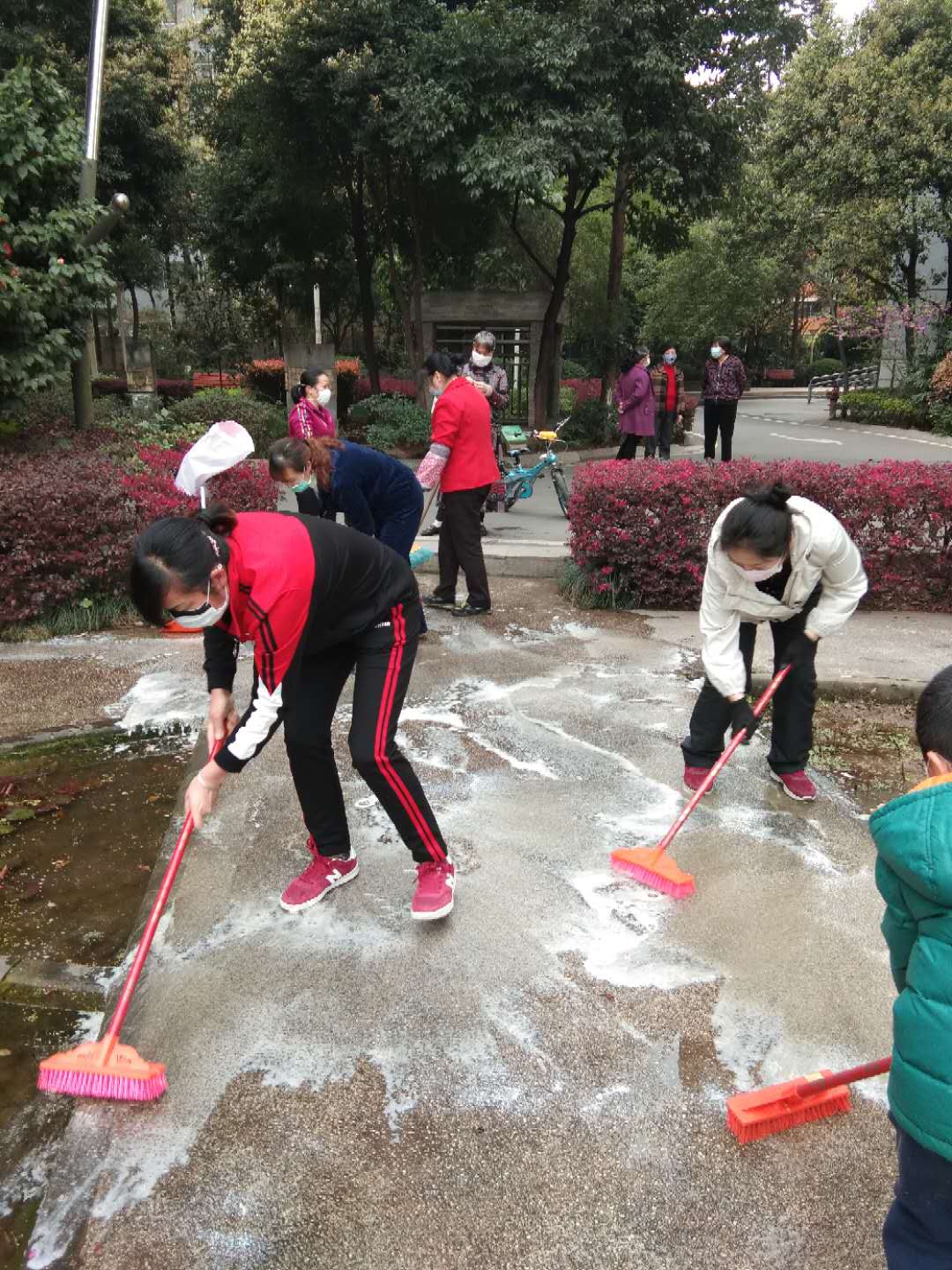 活动当天,全体员工按组分配任务,细化到每个区域,绝不放过任何一个死角。秉承严谨细心的态度,吃苦耐劳的精神,挥动着拖把和扫帚将小区里的杂物一扫而空,拿着酒精和消毒液给园区进行一个全面消毒。行政办公室的员工们也放下了手中的工作,拿起扫帚和喷壶缔造一个更舒适的办公环境。一躬身一起腰,带走的是垃圾,留下的是美景,弄脏了衣服却洁净了园区,身体的疲惫伴随的却是心灵的欢愉。