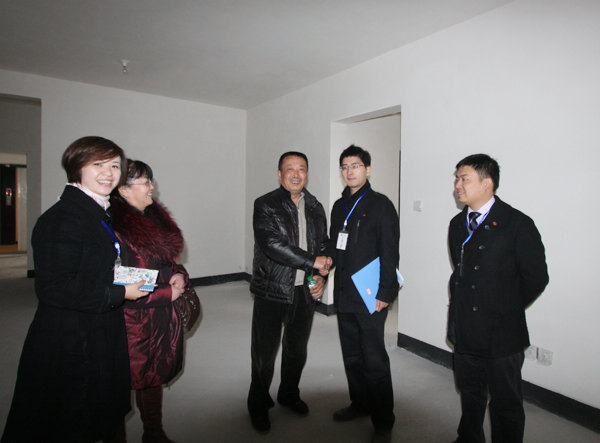 此次预验房活动,公司专门组织了五个专业验房小组全程陪同业主进行预验房,每个小组都配有工程管理、销售、物业服务、建筑施工等四个相关单位的专业人员。业主们在专业验房小组的陪同下,都各自前往自己的新家进行仔细检验。
