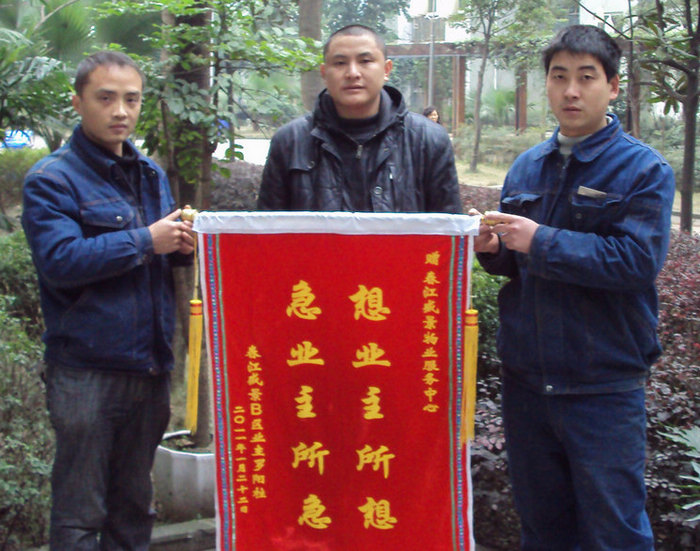 24日上午,业主罗先生捧着一面绣着"急业主所急、想业主所想"的锦旗来到物业服务中心办公室,他激动地说:感谢你们,你们急业主所急、想业主所想,物业员工诚实守信、尽职尽责、技术精湛、无私奉献,永远是我学习的榜样,住在成中的小区,值! (作者:敖德华 黄 明 编辑:刘书堂 责任编辑:李学辉)